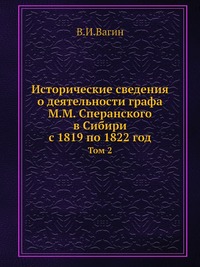 | Полное название книги | В. И. Вагин Исторические сведения о деятельности графа М.М.Сперанского в Сибири с 1819 по 1822 год |