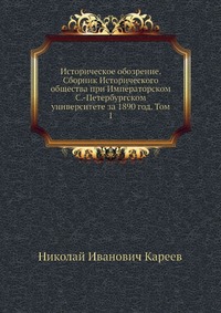 | Полное название книги | Н. И. Кареев Историческое обозрение. Сборник Исторического общества при Императорском С.-Петербургском университете за 1890 год. Том 1 |