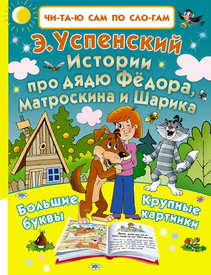 В книге «Истории про дядю Фёдора, Матроскина и Шарика» Э. Успенского собраны коротенькие истории про знаменитых жителей не менее знаменитой деревни – дядю Фёдора, кота Матроскина, пса Шарика и почтальона Печкина. В книге большой шрифт, все слова разбиты на слоги с ударениями, большие цветные картинки – всё это поможет детям, которые только начинают читать, самим познакомиться с этими героями. Впервые малыши смогут сами прочитать по слогам о весёлых приключениях друзей. Книги серии «Читаю сам по слогам» помогут детям полюбить чтение и классиков детской литературы.