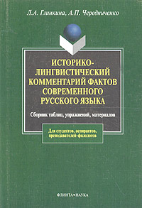 | Полное название книги | Л. А. Глинкина, А. П. Чередниченко Историко-лингвистический комментарий фактов современного русского языка: сборник таблиц, упражнений, материалов для студентов, аспирантов, преподавателей-филологов |