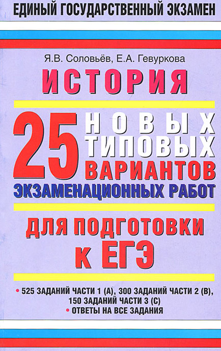| Полное название книги | Я. В. Соловьев, Е. А. Гевуркова История. 10-11 класс. 25 новых типовых варинтов экзаменационных работ для подготовки к ЕГЭ |