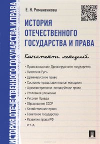 | Полное название книги | Е. Н. Романенкова История отечественного государства и права. Конспект лекций. Учебное пособие |