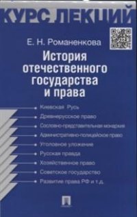 | Полное название книги | Е. Н. Романенкова История отечественного государства и права. Курс лекций. Учебное пособие |