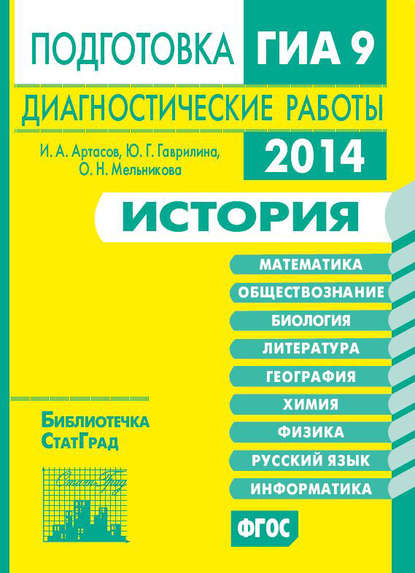 | Полное название книги | Игорь Анатольевич Артасов, Юлия Григорьевна Гаврилина, Ольга Николаевна Мельникова История. Подготовка к ГИА в 2014 году. Диагностические работы |