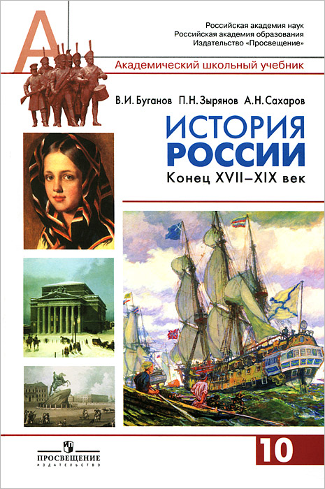 | Полное название книги | В. И. Буганов, А. Н. Сахаров, П. Н. Зырянов История России. Конец XVII-XIX век. 10 класс |