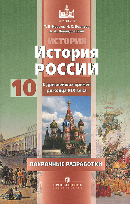 | Полное название книги | Т. В. Коваль, А. А. Левандовский, Н. С. Борисов История России с древнейших времен до конца XIX века. 10 класс. Поурочные разработки |
