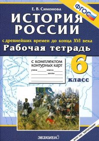| Полное название книги | Е. В. Симонова История России с древнейших времен до конца XVI века. 6 класс. Рабочая тетрадь с комплектом контурных карт |