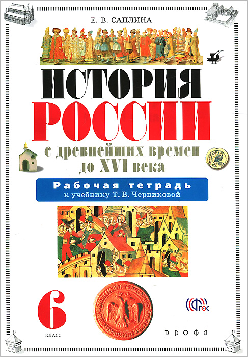 | Полное название книги | Е. В. Саплина История России с древнейших времен до XVI века. 6 класс. Рабочая тетрадь к учебнику Т. В. Черниковой |