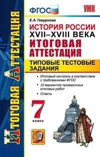 | Полное название книги | Е. А. Гевуркова История России. XVII-XVIII века. Итоговая аттестация. Типовые тестовые задания. 7 класс |