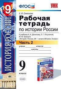 | Полное название книги | Е. В. Симонова История России XX - начало XXI века. 9 класс. Рабочая тетрадь к учебнику А. А. Данилова, Л. Г. Косулиной, М. Ю. Брандта. В 2 частях. В 2 частях. Часть 2 |