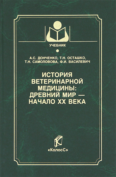 | Полное название книги | А. С. Донченко, Ф. И. Василевич, Т. Н. Самоловова, Т. Н. Осташко История ветеринарной медицины: Древний мир- начало ХХ века |