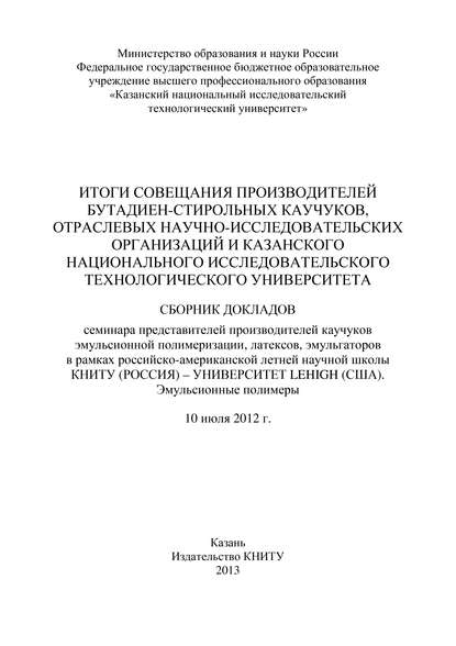 Подробная информация о книге «Итоги совещания производителей бутадиен-стирольных каучуков, отраслевых научно-исследовательских организаций и Казанского национального исследовательского технологического университета Алевтина Петровна Рахматуллина». Сайт не предоставляет возможности читать онлайн или скачать бесплатно книгу «Итоги совещания производителей бутадиен-стирольных каучуков, отраслевых научно-исследовательских организаций и Казанского национального исследовательского технологического университета Алевтина Петровна Рахматуллина».