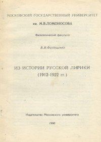 | Полное название книги | В. И. Фатющенко Из истории русской лирики (1912-1922 гг.) |