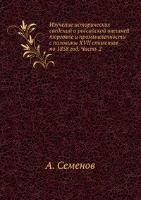 | Полное название книги | А. Семенов Изучение исторических сведений о российской внешней торговле и промышленности с половины XVII столетия по 1858 год. Часть 2 |