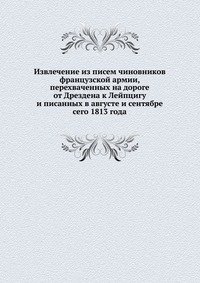 | Полное название книги | Коллектив авторов Извлечение из писем чиновников французской армии, перехваченных на дороге от Дрездена к Лейпцигу и писанных в августе и сентябре сего 1813 года |