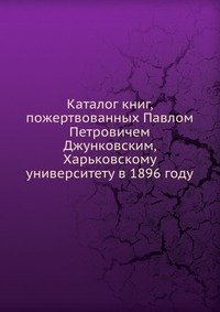 | Полное название книги | Коллектив авторов Каталог книг, пожертвованных Павлом Петровичем Джунковским, Харьковскому университету в 1896 году |