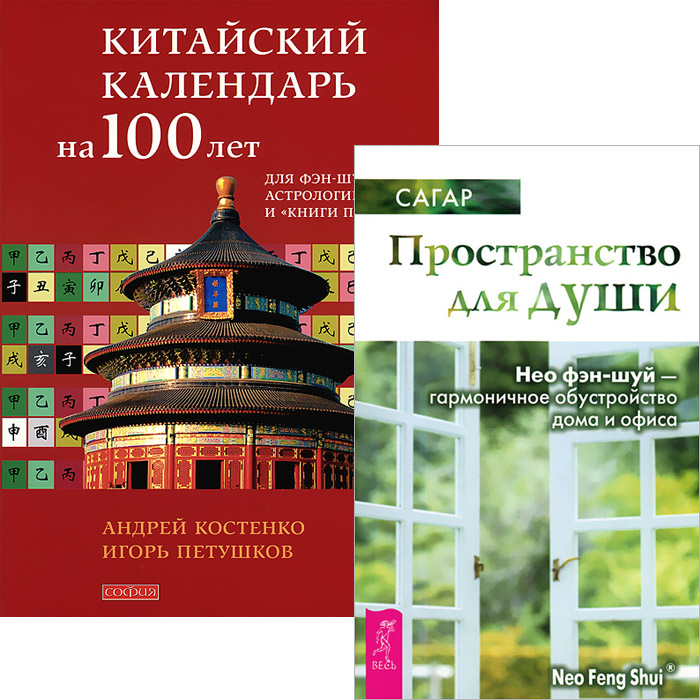 В комплект вошли 2 книги: Андрей Костенко, Игорь Петушков "Китайский календарь на 100 лет для фэн-шуй, астрологии и "Книги Перемен"" и Сагар "Пространство для души. Нео фэн-шуй - гармоничное обустройство дома и офиса". Это и многое другое вы найдете в книге Китайский календарь. Пространство для души (комплект из 2 книг) (Андрей Костенко, Игорь Петушков, Сагар)