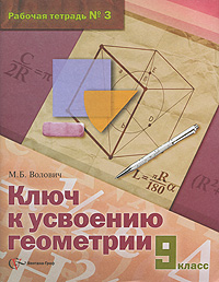 | Полное название книги | М. Б. Волович Ключ к усвоению геометрии: Рабочая тетрадь № 3 для учащихся 9 класса общеобразовательных учреждений: К учебнику Л.С.Атанасяна, В.Ф.Бутузова, С.Б.Кадомцева и др. (под ред. Атанасяна С.Л.) |