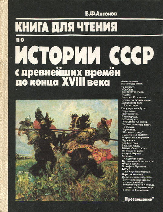 | Полное название книги | В. Ф. Антонов Книга для чтения по истории СССР с древнейших времен до конца XVIII века |