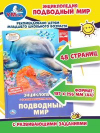 - диплом в подарок Эта занимательная энциклопедия расскажет юному читателю всё самое интересное о многообразии жизни подводного мира и его обитателях. Яркие фотографии и удивительные факты увлекут ребёнка и помогут ему быстро, эффективно и с удовольствием усвоить новую информацию. Чтение энциклопедии ТМ «УМка» способствует расширению кругозора и развитию:
