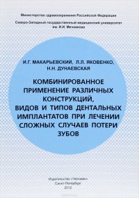 | Полное название книги | И. Г. Макарьевский, Л. Л. Яковенко, Н. Н. Дунаевская Книга Комбинированное применение различных конструкций, видов и типов дентальных имплантатов при лечении сложных случаев потери зубов |