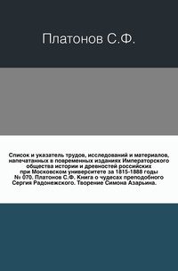 | Полное название книги | Сергей Платонов Книга о чудесах преподобного Сергия Радонежского |