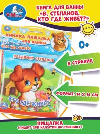 | Полное название книги | Степанов Книжка пищалка для ванны малышам развивающая Кто где живет Умка |