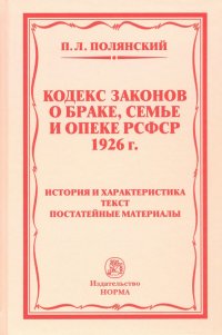 | Полное название книги | Павел Львович Полянский Кодекс законов о браке, семье и опеке РСФСР 1926 года. история и характеристика. Текст |