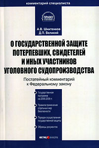 | Полное название книги | Д. П. Великий, А. В. Шнитенков Комментарий к Федеральному закону "О государственной защите потерпевших, свидетелей и иных участников уголовного судопроизводства" |