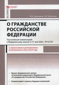 | Полное название книги | Ю. А. Дмитриев, Е. Ю. Моисеева Комментарий к федеральному закону "О гражданстве РФ" (постатейный). Дмитриев Ю.А., Моисеева Е.Ю |