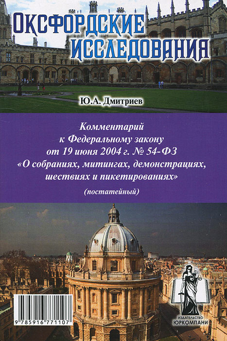 | Полное название книги | Ю. А. Дмитриев Комментарий к Федеральному закону от 19 июня 2004 г. №54-ФЗ "О собраниях, митингах, демонстрациях, шествиях и пикетированиях" (постатейный) |