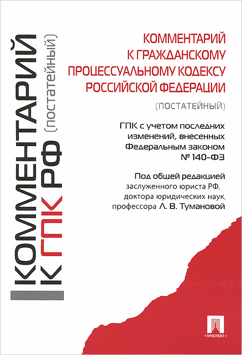 | Полное название книги | ред., Л. В. Туманова Комментарий к ГПК РФ (постатейный). С учетом ФЗ № 140-ФЗ |
