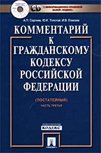 | Полное название книги | И. В. Елисеев, Ю. К. Толстой, А. П. Сергеев Комментарий к Гражданскому кодексу Российской Федерации (постатейный). Часть третья (+ CD-ROM) |