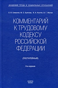 | Полное название книги | М. О. Буянова, И. А. Костян, О. В. Смирнов, В. Г. Малов Комментарий к Трудовому кодексу Российской Федерации (постатейный) |