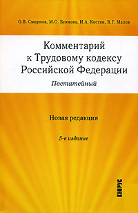 | Полное название книги | М. О. Буянова, И. А. Костян, О. В. Смирнов, В. Г. Малов Комментарий к Трудовому кодексу Российской Федерации. Постатейный |