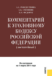 | Полное название книги | А. А. Рождествина, Е. О. Федорук, А. Б. Смушкин Комментарий к Уголовному кодексу Российской Федерации (постатейный) |