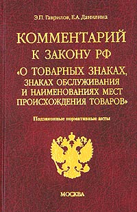| Полное название книги | Е. А. Данилина, Э. П. Гаврилов Комментарий к закону РФ "О товарных знаках, знаках обслуживания и наименованиях мест происхождения товаров". Подзаконные нормативные акты |