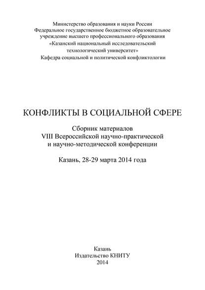 | Полное название книги | Коллектив авторов, Конфликты в социальной сфере. Сборник материалов VIII Всероссийской научно-практической и научно-методической конференции |