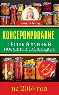 | Полное название книги | Татьяна Борщ Консервирование. Полный лунный посевной календарь на 2016 год |