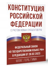 | Полное название книги | Автор не указан Конституция Российской Федерации с учетом новых субъектов РФ и Федеральный закон "О государственном языке РФ" в редакции от 28.02.2023. Флаг, герб, гимн |