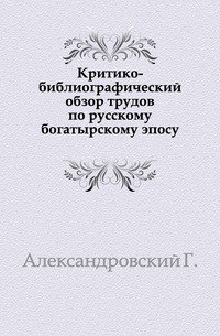 | Полное название книги | Г. Александровский Критико-библиографический обзор трудов по русскому богатырскому эпосу |