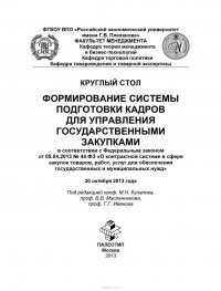 | Полное название книги | Коллектив авторов Круглый стол «Формирование системы подготовки кадров для управления государственными закупками» |