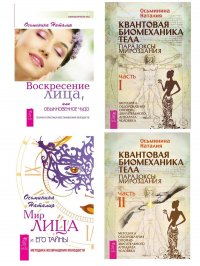 Комплект состоит из книг: Квантовая биомеханика тела. Методика оздоровления опорно-двигательного аппарата. Часть 1, Квантовая биомеханика тела. Методика оздоровления опорно-двигательного аппарата. Часть 2, Воскресение лица, или Обыкновенное чудо. Теория и практика восстановления молодости, Мир лица.Квантовая биомеханика тела. Методика оздоровления опорно-двигательного аппарата человека. Часть 1В книге «Квантовая биомеханика тела» читателю предлагается выйти за рамки традиционного анатомического строения тела и посмотреть на человека как на неотъемлемую часть Вселенной. Вы узнаете, что все в мире, от простейшей клетки до планеты Земля, создано и функционирует по единым законам и имеет в своей основе эталонную матрицу. Следовательно, для здоровой, гармоничной и счастливой жизни необходимо грамотно «встроить» тело согласно общим законам Вселенной в его собственную эталонную матрицу, добиваясь правильной осанки. Для этого недостаточно выполнять общеизвестные физические упражнения — нужно еще понимать, как работает эта матрица, и как взаимосвязаны процессы, протекающие в теле человека, с теми, которые идут во Вселенной. Обо всем этом рассказывает Наталия Осьминина — биоинженер, специалист по биомеханике лица и тела. Перед вами первая часть книги.Квантовая биомеханика тела. Методика оздоровления опорно-двигательного аппарата человека. Часть 2Перед вами вторая часть книги, в которой вы продолжите знакомство с удивительным миром человеческого организма. Автор дополняет теоретический материал практикой и дает методику для конкретной работы: описываются приемы для коррекции осанки, устранения деформаций в нижней и верхней половине тела, общие упражнения для оздоровления опорно-двигательного аппарата. В книге рассказывается о человеке с точки зрения волнового (невидимого) устройства мира. Информация будет понятной даже неспециалисту, поскольку автор прибегает к ассоциациям из разных областей знаний: от биологии до геополитики. Теоретический материал подкрепляется пояснительными иллюстрациями и многочисленными примерами из жизни.Воскресение лица, или Обыкновенное чудо. Теория и практика восстановления молодостиЯ приглашаю вас в увлекательнейшее путешествие в Мир лица, находящийся под кожей, и надеюсь, что он станет для вас откровением. Приоткрыв косметический занавес покрова кожи, вы пойдете Путем познания истинных причин деформаций и старения лица. Вы узнаете, что эстетика нашего лица и тела напрямую зависит не от кожи, а от баланса и здоровья нашей костно-мышечной системы.Метод МиоЭстетика, изложенный в этой книге, логичен и понятен, потому что основан на Обыкновенном Чуде — великом чуде нашего организма, его способности к регенерации и самовосстановлению. Именно поэтому приемы МиоЭстетики, базирующиеся на знании этих законов, ... Это и многое другое вы найдете в книге Квантовая биомеханика тела 1 + 2 + Воскресение лица + Мир лица (Осьминина Наталия)