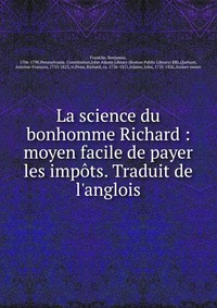 La science du bonhomme Richard. Moyen facile de payer les impots. Traduit de l"anglois. Воспроизведено в оригинальной авторской орфографии (издательство "Philadelphie ; Se vend a Paris : Chez Jean-Francois Bastien, Libraire ..."). Это и многое другое вы найдете в книге La science du bonhomme Richard (Benjamin Franklin)