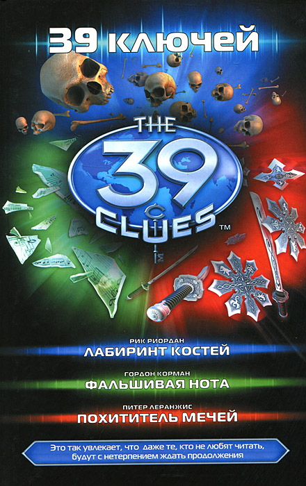 После смерти любимой бабушки, 14-летняя Эми и 11-летний Дэн Кэхилл неожиданно узнают о том, что принадлежат к известному роду, представители которого на протяжении многих веков правили странами, делали изобретения, совершали научные открытия. Теперь Эми и Дэну, а также другим наследникам, предстоит разгадать загадку, оставленную им главой семейства Грейс Кэхилл, и собрать разбросанные по свету тридцать девять ключей, которые дадут их обладателю власть над всем миром. Но получить такое могущество может только один человек, а значит, участников гонки ожидают коварство, интриги и напряженная борьба друг с другом за право добраться до финала. Это и многое другое вы найдете в книге Лабиринт костей, Фальшивая нота, Похититель мечей (Рик Риордан, Гордон Корман, Питер Леранжис)