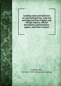 | Полное название книги | Pitt Cobbett Leading cases and opinions on international law, colected and digested from English and foreign reports, official documents, parliamentary papers, and other sources |