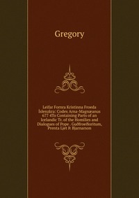 | Полное название книги | Gregory Leifar Fornra Kristinna Froeda Islenzkra: Codex Arna-Magn?anus 677 4To Containing Parts of an Icelandic Tr. of the Homilies and Dialogues of Pope . Gu?froe?isritum, Prenta Ljet ?. Bjarnarson |
