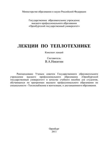 Конспект лекций предназначен для изучения курса «Теплотехника» студентами вузов, обучающимися по специальности «Теплоснабжение и вентиляция», и дистанционного образования.