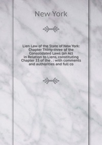 | Полное название книги | New York Lien Law of the State of New York: Chapter Thirty-three of the Consolidated Laws (an Act in Relation to Liens, constituting Chapter 33 of the . : with comments and authorities and full co |