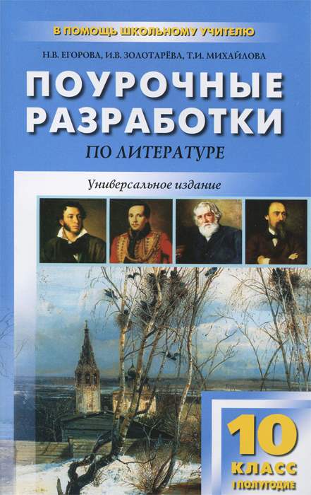 | Полное название книги | И. В. Золотарева, Н. В. Егорова, Т. И. Михайлова Литература. 10 класс. 1 полулгодие. Поурочные разработки |